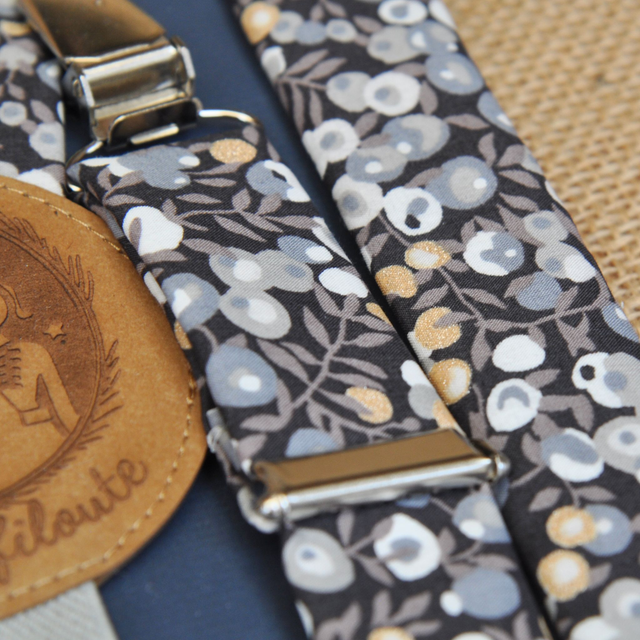 Ces bretelles dans un dégradé de gris est délicatement ponctué de petites touches dorées qui brillent tout en douceur. À la fois chic et intemporel, il apporte une note élégante et lumineuse aux tenues des plus petits. Parfait pour un mariage, un baptême ou une jolie occasion en famille.