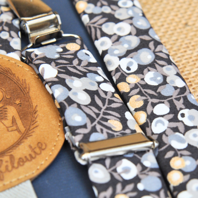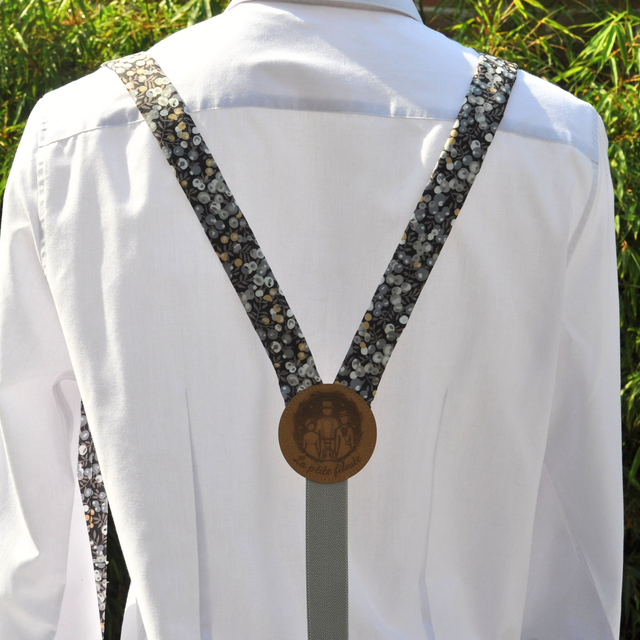 Ces bretelles raffinées jouent avec un élégant dégradé de gris - clair, moyen, anthracite - ponctué de délicates touches dorées.