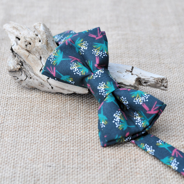Ce nœud papillon pour homme rappelle le graphisme des fleurs exotiques. Chic et raffiné, il apporte une touche végétale subtile à vos tenues. Un accessoire élégant pour un mariage, un baptême ou simplement pour illuminer votre quotidien avec style.