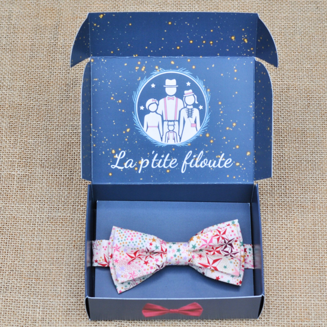Ce nœud papillon au motif coloré et pétillant évoque les paillettes dans les yeux d’un moment d’émerveillement. Multicolore, il apporte une touche originale et joyeuse, idéale pour un mariage, un baptême ou une jolie photo en famille.