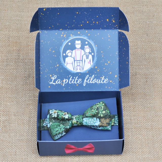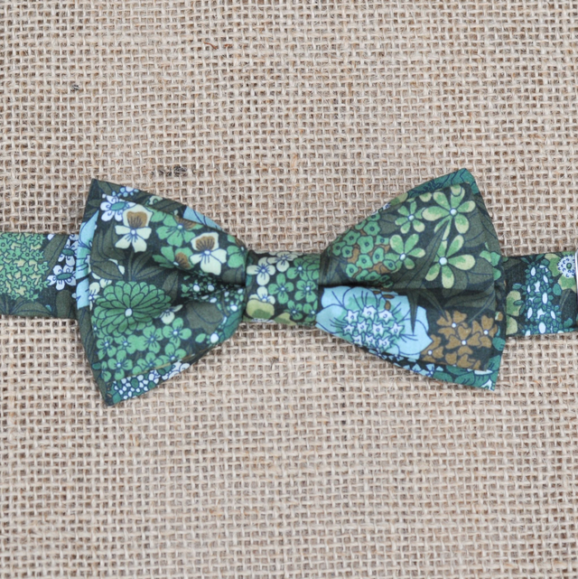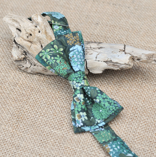 Ce nœud papillon fleuri aux tons sur tons et aux couleurs naturelles évoque la délicatesse des feuillages des sous-bois. Chic et raffiné, il apporte une touche végétale à la tenue de votre enfant.