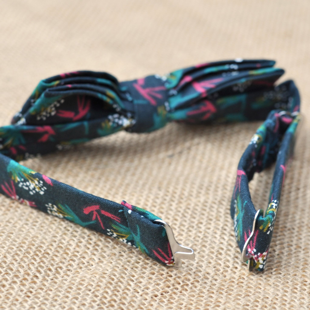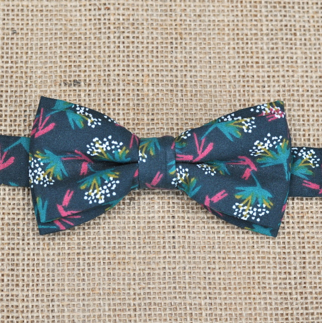 Ce nœud papillon aux motifs exotiques et aux couleurs chaleureuses est l’accessoire idéal pour les petits looks pleins de charme. Son vert bouteille, rehaussé d’éclats de framboise, de moutarde et de blanc, apporte une touche végétale élégante et joyeuse.