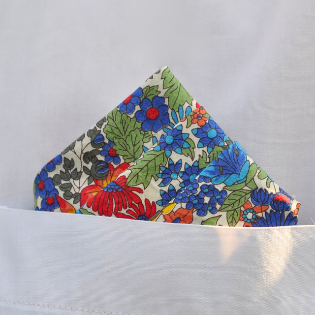 Symbole intemporel d’élégance, la pochette de costume apporte la touche finale qui fait toute la différence. Réalisée dans le tissu Liberty of London – Margaret Annie A - elle se distingue par son raffinement et ses couleurs pétillantes. Idéale pour un mariage, une cérémonie ou comme cadeau raffiné.