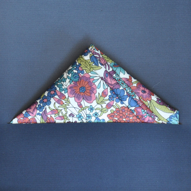 Symbole intemporel d’élégance, la pochette de costume apporte la touche finale qui fait toute la différence. Réalisée dans le tissu Liberty of London – Margaret Annie Brocéliande - elle se distingue par son raffinement et ses couleurs poétiques. Idéale pour un mariage, une cérémonie ou comme cadeau raffiné.