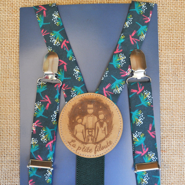 Ces bretelles aux délicats motifs colorés rappellent le graphisme des fleurs exotiques. Parfait pour un mariage, une fête de famille ou simplement pour rehausser un look du quotidien avec une touche chic et colorée. La couleur vert bouteille se marie parfaitement avec un costume vert, beige ou grenadine pour les plus audacieux.