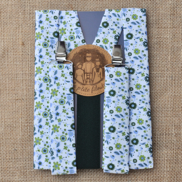 Ces bretelles aux motifs floraux de type Liberty est une véritable bouffée de fraîcheur. Ses teintes douces – blanc, bleu ciel, vert bouteille et anis – apportent de la lumière et une touche naturelle à votre tenue.